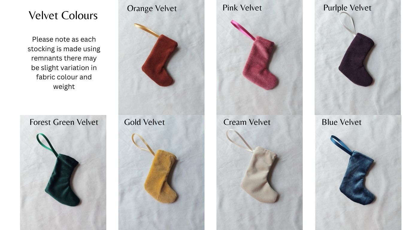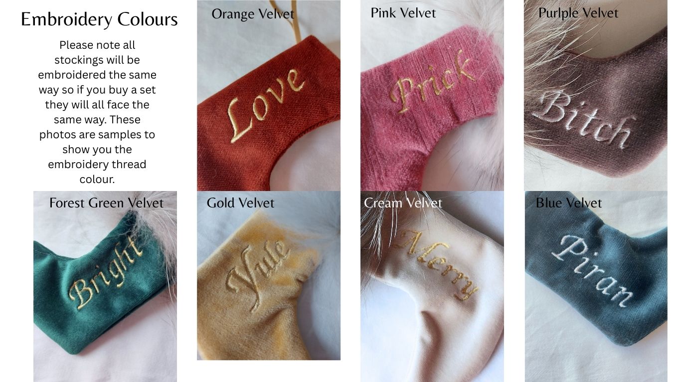 - Each mini stocking is made using sumptuous velvet remnants, recycled vintage fox fur and is embroidered in gold or silver thread.